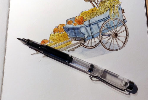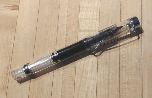 The Wing Sung 3009 is a transparent pen so it’s easy to see how much ink you’re carrying. It is piston-filled and holds a lot of ink. These two things combine to make it an ideal pen to carry on location. And did I mention that it only costs $4? No big deal if I lose it. I now own three of them, just in case (grin).