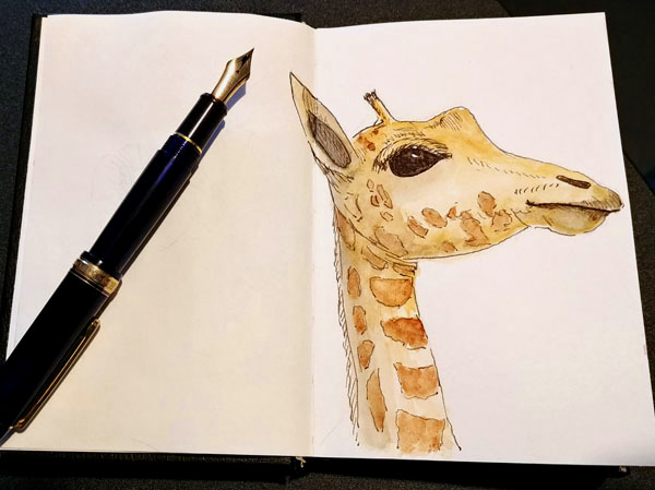 Part of this exhibit is the head of a young giraffe and I decided to draw it. Where I had to sit was too close and I was looking upward at the head such that I couldn’t see things like its left ear so the sketch is a bit odd. Still, I had fun finally being out sketching and I enjoyed drawing this guy, or girl.