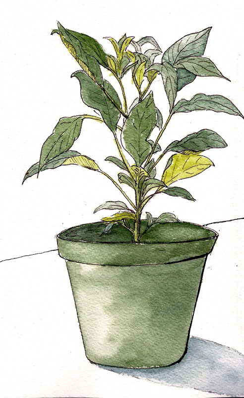 In my last post I mentioned that I had to cancel a local sketching adventure because my knees weren’t cooperating and I suggested that I might sketch a pepper plant that I’d bought. That’s exactly what I did.