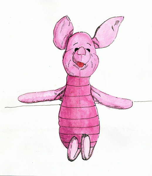 I’m continuing to draw my daughter’s collection of stuffed animals and I really enjoy it. I’m not sure whether this is because they’re stuffed animals (very different subject for me) or because its studio work, something I am dis-inclined to do, though I should. In either case, drawing Piglet was a joy. Piglet, you’re the star today.