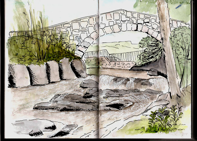 This required that I get down to the river level which put me in shade, among a bunch of foliage and near water. What could go wrong? Mosquitoes, mosquitoes, and more mosquitoes. What made them worse was that I was drawing. I’m oblivious to my surroundings when I’m sketching, even the swarm of mosquitoes that were biting me.