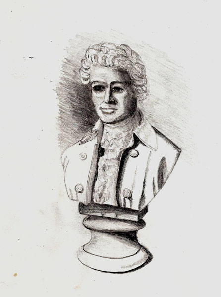 I started by drawing a bust of Mozart, a cast I picked up at a flea market in a small town east of Quebec City. Only an artist drives along a road to a sketching location and has to turn around to visit the flea market because they saw a white head sticking up from one of the tables.