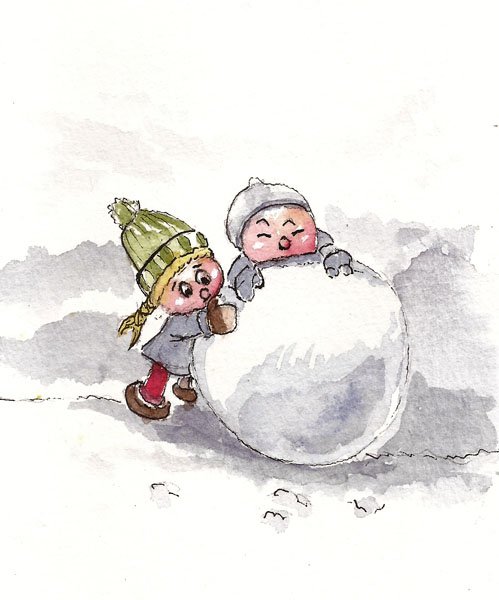 Once a year we all get together and draw holiday cards in one form or another. This year was no exception though I confess that I wasn’t much in a holiday mood that day. It was a lot of fun, though, because there were a bunch of us creating art so I could see what everyone else was doing while I puttered away myself. For this I always use Strathmore’s Watercolor Cards, which are convenient. I never did get around to writing the obligatory Merry Christmas or Happy New Year on them.