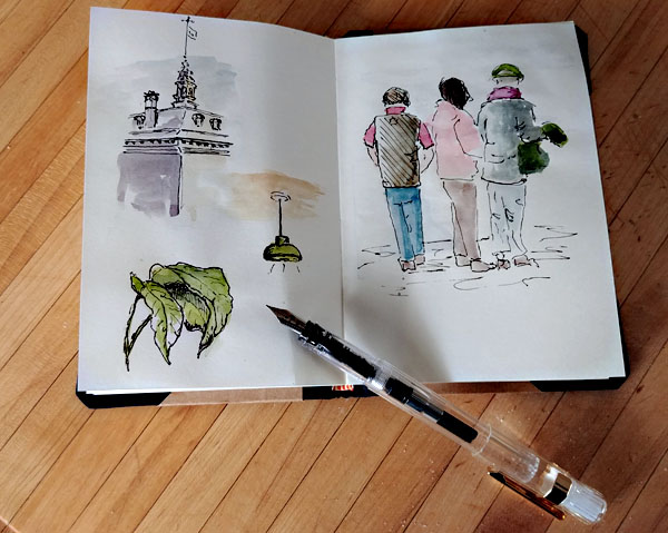 Pat Roberson wrote to me asking if she was somehow missing my posts. I was glad she was missing my posts, but had to confess that they were being missed because I wasn’t writing them. If I could write about CT scans, doctor visits, constant blood and urine testing, and a bit of depression, I’d have lots to write about. As it is, however, writing about urban sketching would leave me empty-handed right now.