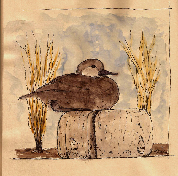 I took a short break to get a drink and rub my hand a bit. Then I sat down to draw a duck. I felt a bit more confident by this point and I didn’t need to second guess myself so much. We’d decided to stop at noon for lunch and so I rushed a bit to finish this one but I was happy, and a bit tired.