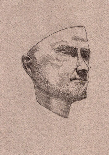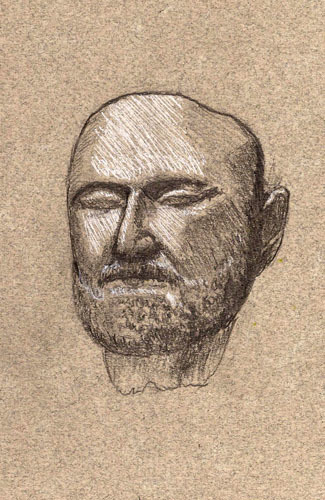 Further I decided that I would learn my pencil skills by drawing portraits, either from photos or from plaster casts. This was (is?) probably foolhardy because my least favorite sketching subject is people, but I need practice in this area too, so while the wind, rain and snow keeps me indoors, I might as well “get out of my comfort zone” and learn something new.