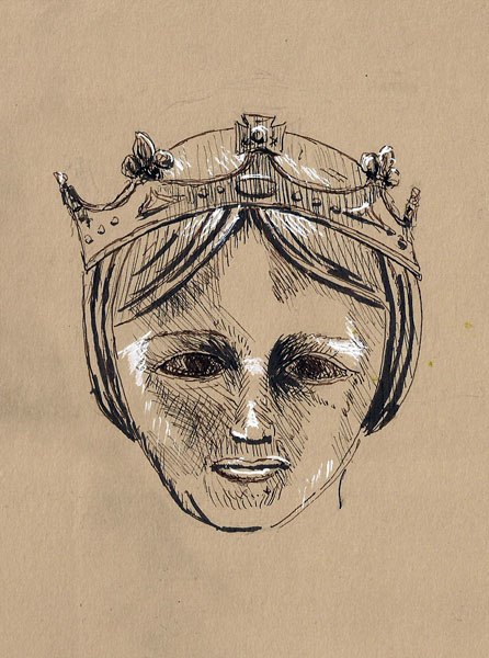 A lot of their actions were political but during the 60s there were over 200 terrorist bombings, including a famous one in Quebec City. One night, in 1963, dynamite was stuffed into a large bronze statue of Queen Victoria and the resultant explosion blew her head off and sent it flying over 100 yards across Victoria Park. I won’t bore you with the rest of Quebec history but the Quiet Revolution that took place in the 70s is a remarkable history of a people regaining control of their province. Instead, I’ll share with you a sketch I did of Vicky’s head, which resides in our Musee de la Civilisation.