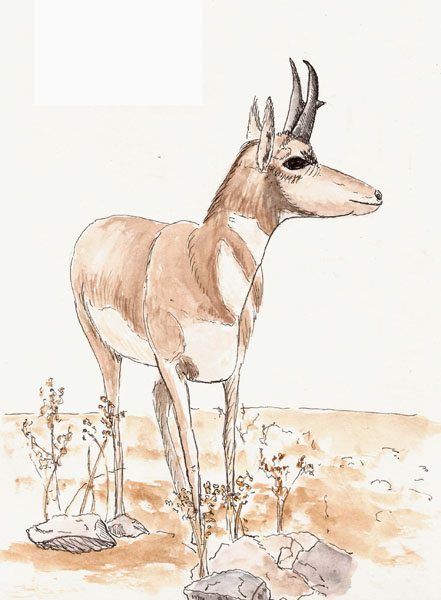 Across the corridor was an antelope scene and since I only had a short time remaining, I decided to give it a try rather than doing my typical walkabout to find a subject. I worked fairly quickly and, I suppose, there are some errors but nevertheless, it was a fitting end to a great day. When I was finished I realized that I was about 10 minutes late for my rendevous with my daughter. Sketching and time just don’t mix well.