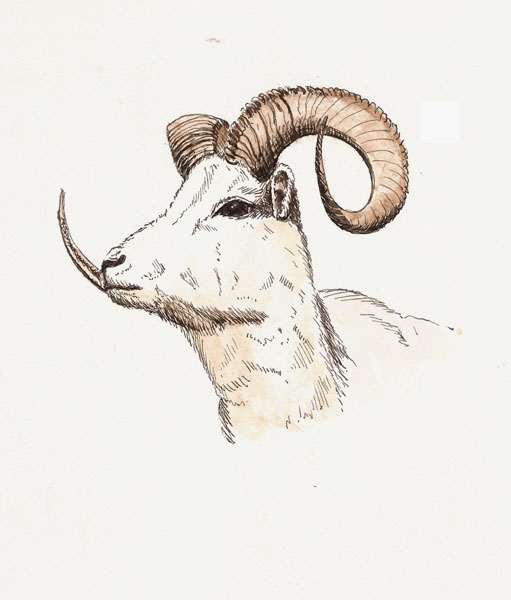 With that mess behind me I decided it was snack time so I could regroup. Then I returned to the mammal exhibit, determined to redeem myself. I targeted the head of a thinned-horn sheep and, leaving wet-in-wet techniques for another day, achieved what I felt was reasonable redemption.