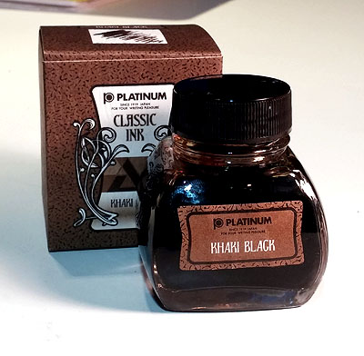 In the case of these Platinum inks, however, the naming convention caught my attention as every one of them is named Platinum (some color)-Black. I didn’t know what that meant but was excited enough to buy a bottle from Wonder Pens, who got it to me quickly. This is a very pricey ink (roughly $30/bottle) so Wonder Pens’ low shipping costs was appreciated.