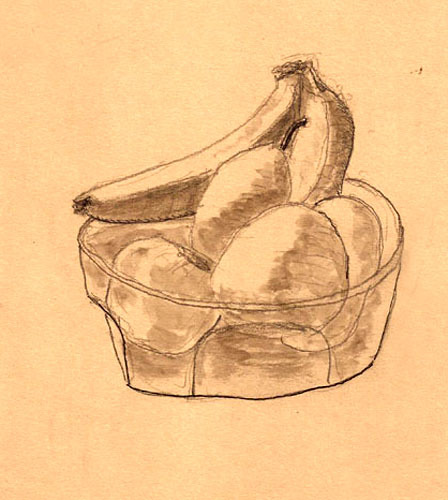 As it turns out, I’m really horrible at drawing with my right hand. My eyes still worked so I could identify proportions and relationships but getting my hand to put the lines where I wanted them, not so good. Anyways, here’s the results. In case you can’t recognize it, it’s a glass bowl with some fruit in it. I gave up entirely when it came to hatching; as a righty I failed completely at that.