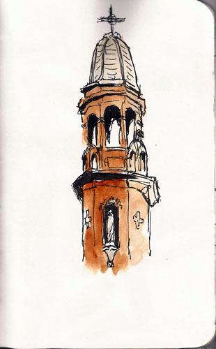 Since it was all wood, I thought it fitting to draw it with brown ink so I used a Pilot 78G with DeAtramentis Document Brown ink for this sketch.