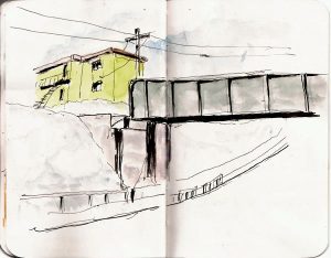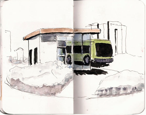 The other thing I wanted to do was to just get outside sketching. This I accomplished. I ran this experiment down to -20C (-5F). When it got colder than that, I gave up. I’m a sissy when it comes to cold. But I did manage to do fifty of these sketches, nearly filling a small Stillman & Birn Epsilon softcover book. I’ll probably do some more this summer, when it’s not so cold. Here are a few of the sketches I did beyond the ones I posted previously.