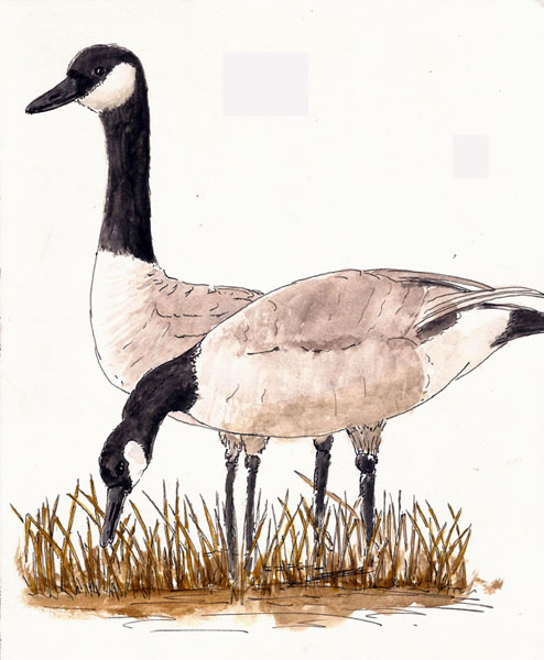When I finished that I wandered around a bit. There’s so much to see and study there. Eventually, though, I settled down in front of a couple Canada Geese. By the time I got them drawn it was time for lunch and we all got together, shared our projects, and chatted up a storm. Then I added color to my geese. I’m sure we’ll go back again, and probably real soon. Next stop, though, is the Croquistes de Quebec sketchcrawl.