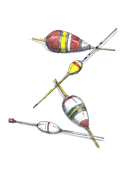 With so many beautiful animal subjects at the museum it’s easy to ignore the multitude of antique and modern fishing and hunting equipment on display. But on this day I was struck by a long row of antique fishing bobbers, or floats if you prefer that term. While they did have an example of modern, red/white plastic bobbers, most of them were very old, wooden bobbers. Rather than drawing them in a row, I created this composition and liked the result. Hope you do too.