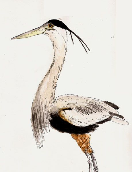 This heron and I spent some time together. He (she?) was beautiful. I was doing this standing up and when it came to the paint I ran out of hands, which led to things being out of control, and that’s putting it mildly.