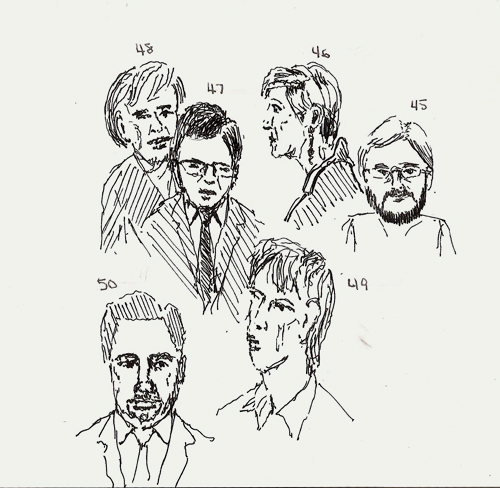 This evening I was watching TV news and started drawing the talking heads. This added another 6 to the head count (pun intended) so I’ve drawn 50 people so far. More to come. How are you doing with your 100 people challenge?