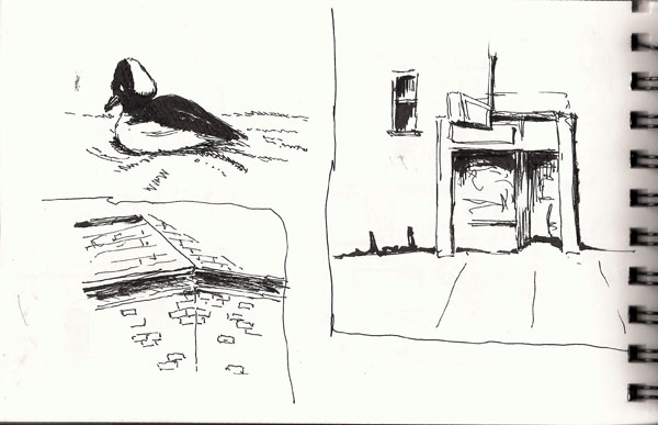 Eventually the weather improved and I was back at it again. I’d resolved to do 100 of these sketches. My sketchbook was still moving around almost as much as my pen so there was a randomness in the line work. Here are a couple more examples.