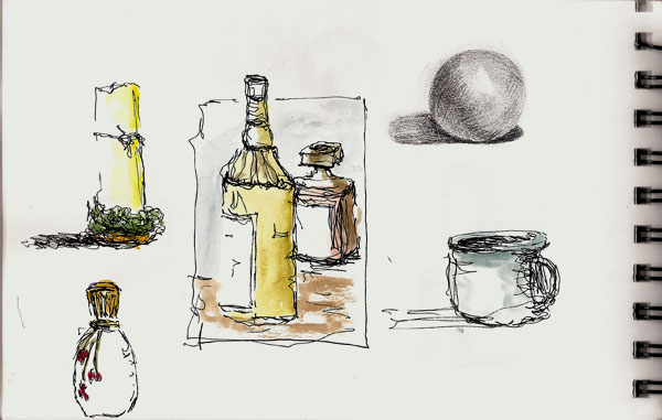 I’m really behind in my posting but this event is so old that it’s starting to show up in the history books. Way back when, about a week and a half ago, Hubert Langevin invited us to sketch at his house. As a big storm was predicted and we got to watch the snow going sideways through the large windows of his house as we drew objects Hubert had placed around for that purpose. There were seven of us and we spent the day sketching, laughing and eating marvelous vegetable soup and fresh bread. Lisette brought date bars for dessert.