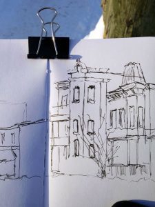 So with this as my motivation, and having agreed to be part of Marc’s project, I went out sketching. The first day it was -14C, but it wasn’t very windy. I set a timer and started drawing. I think my timer is broken because the time passes far too quickly and my results were horrible. But I know that early results are always horrible so I wasn’t put off by the results. Here’s a couple of them.