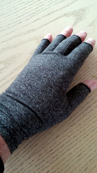 When he gave them to me I thought “sure…like those are going to help.” In truth, they might help a little with my arthritis but not much. But they have interesting virtues that other fingerless gloves do not have.
