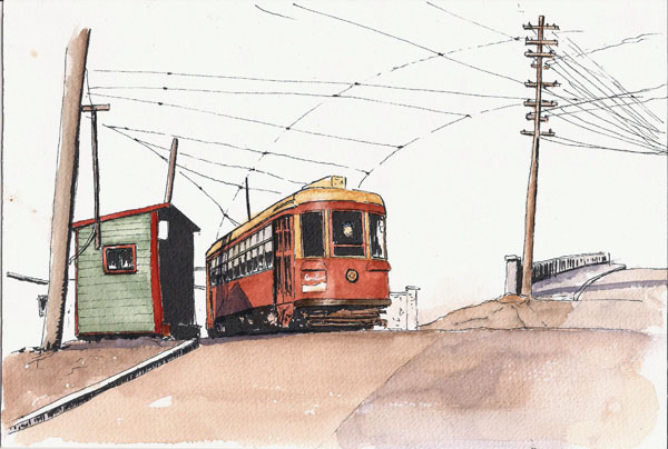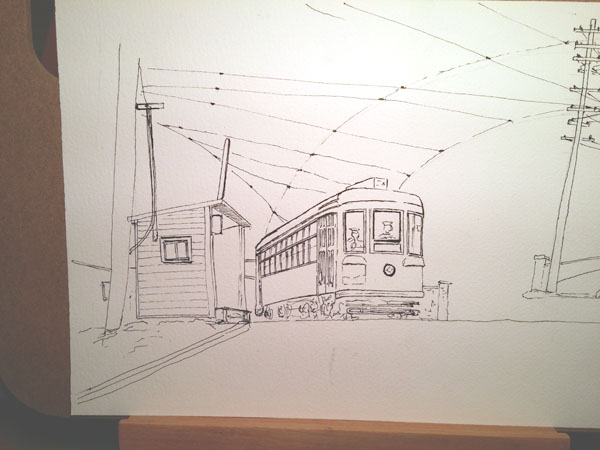 I decided it was time, though, to draw from a photo. Looking for something that would motivate me to do so, I decided that I should draw from a photo that is not of something I can go out and see. The idea of historic sketching must have come from my watching the new Timeless series, which is about time travel, but as I already have a lot of historic photos of Quebec City I thought that was where I should begin. I chose a photo of a trolley, both because I like trolleys and because it was taken in the year that I was born.