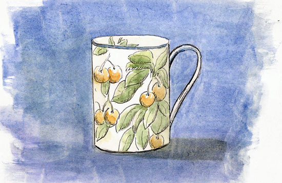 Things were starting to wrap up and a couple of our group started packing to leave. I thought I had a few more minutes, though, so I started sketching my tea cup. Very quickly I drew the basic shape and then started slathering it with oranges and leaves. It was lots of fun and a perfect end to the day. Sketching in a group is special. I hope you get a chance to do it, and do it often.