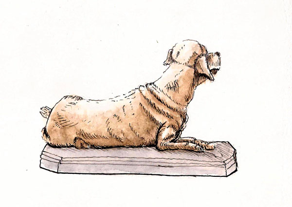 Six of us arrived at 10AM but we probably didn’t start sketching until 11AM because of all the stuff to see and talk about. But ultimately we grabbed something to draw and the room went quiet. We were in sketchers-ignore-everyone mode buried deep in the neural connections between eye and hand. I started by drawing the backside of a dog statue that Louise had decided to draw from the front.