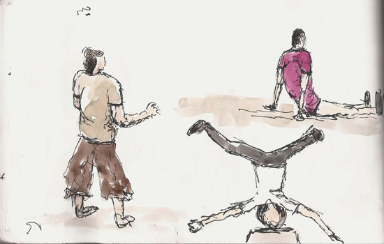 For me to begin sketching at the École de Cirque is hard for two reasons. The first is that I’m simply mesmerized by what is before me. There was a juggler who was balancing a ring on his head while juggling several other rings, passing smaller ones through the ring on his head as he juggled. He was amazing.