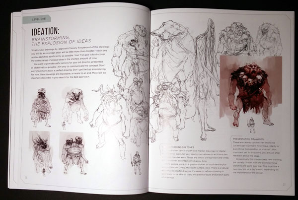 To be honest, I got the most from the Ideation section. This section is closest to what I do. It’s sketching and in this case, it’s sketching in the form of brainstorming ideas, dumping as many as you can on the page so they can be visualized and evaluated. This was where I surprised myself because I found myself scribbling copies of some of those sketches and I had a ball doing them. I even started adding stuff to those sketches, or removing things. To be sure, I would have been laughed out of any concept director’s office but it was fun nevertheless.