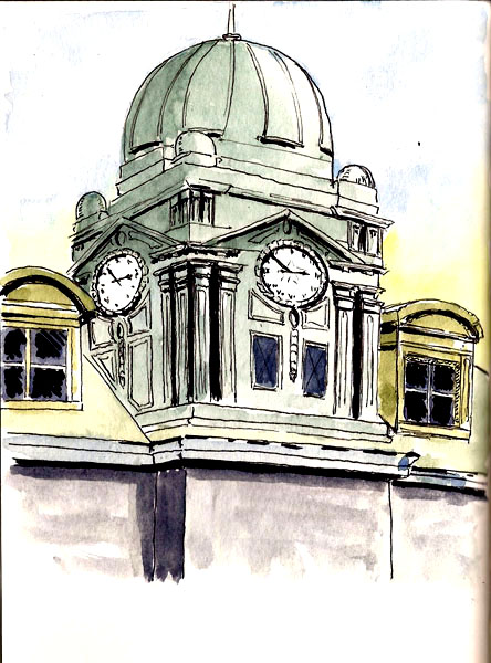 From a sketcher point of view these are pretty great buildings. The day was boiling hot so we required shade for sketching, found some, and we did these sketches of the large dome on one of the buildings.