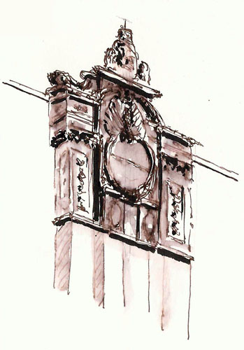 After chatting a bit, we decided that the best thing for the first morning was to spend some time playing tourist, making a tour of the old city so she could decide what attracted her the most as a sketcher. We did just that, though in the end I think she decided that everything interested her as a sketcher. But we had a plan for upcoming sketching days that would make the best use of her time here.