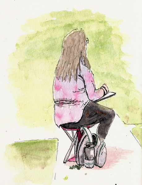 It’s always fun to draw someone who is sketching because you know they’re not going anywhere for a while. Karen was typical in that regard.