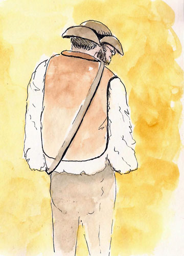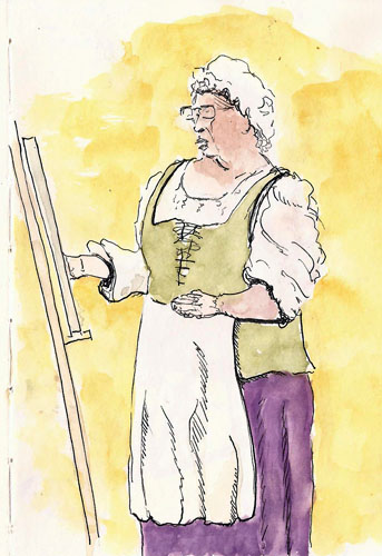 I’m not much of a people sketcher, particularly when the targets are moving, which was the case as the watercolorists were talking with visitors, showing them period items and paintings. But, practice makes perfect and I’m sure I only need to draw a couple thousand more before I figure it out. Anyways, here’s a few of the sketches I did that day. All were done in a Stillman & Birn Alpha softcover sketchbook with my Platinum 3776 pointy device.