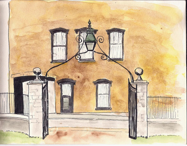 Yvan and I had been quick-sketching people at Place d’Armes in Quebec City when the sun just became too much for us so we started walking around. We decided to sketch the entry gate to the small parking lot in front of Trinity Church. Mine is rather spartan as my arthritis was acting up and I was having some difficulty directing my pointy device. Thought I’d share it anyway.