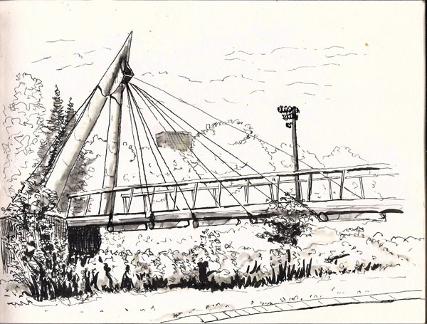There are compromises in this approach. Anyone who does it knows them. Time, weather, interruptions and sitting on a tripod stool balancing your sketchbook are among them. Some times are better than others, however, and I’d like to share a couple “oops” sketches with you.