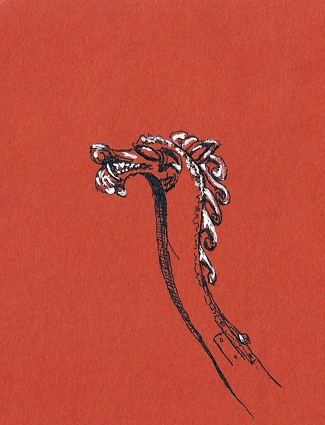 They decided to visit Quebec City and they showed up last Friday. I thought it might be fun to draw the ship so I headed down to the harbor area. Unfortunately, a lot of other people decided they should go to the harbor area too, armed with cameras, bicycles, strollers, and there was a guy with a wagon. There were enough people to make it difficult to stick your cell phone in the air to get a shot of the ship without a dozen heads in the picture. Sitting down to draw the ship caused one to get a great view of a lot of…well, let’s just say the view of the people was lower than those heads. The best I could do was to stand, actually having to move around to get a glimpse of the nose of the boat as I did this quick sketch of the dragon figurehead.