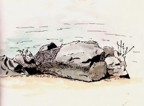 I kept moving but at this point my shorts/tshirt garb and frozen physiology had become foolhardy. I certainly couldn’t concentrate on drawing so I was close to calling it quits. One more lesson learned, maybe.