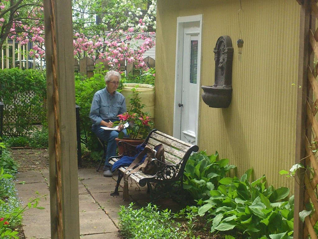 We sketchers have crawled from under our winter hibernation rocks and are quickly hitting full stride. Yvan invited us to come to his house to draw in his garden, which is his entire yard as he’d rather have plants and flowers than grass – just another reason I like Yvan so much.