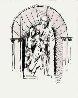 Spring rains have started so soon we’ll be able to have our sketchcrawls outdoors. On Sunday, April 10th, at 10:00AM, though, the Croquistes de Québec will meet at the chapel associated with the Musée de l’Amerique Francophone. If it’s warm enough the area around the museum is full of sketching targets, but if not we can sketch in the chapel. Some of us have been sketching there throughout the winter and since the place is full of statues, woodcarvings and fixtures that are worthy of sketching. Check the Croquistes de Québec site for details. I’ll include a few of the sketches I’ve done in the chapel as examples of the possibilities. See you there.