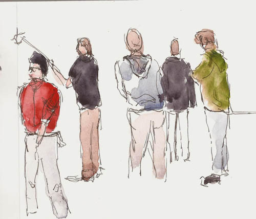 I approached the morning with my little, red Field Notes book instead of my normal sketchbook. I spent a lot of time wandering but when I stopped I did these small sketches. It wasn’t the most productive morning but, as always, it was fun chatting with friends.