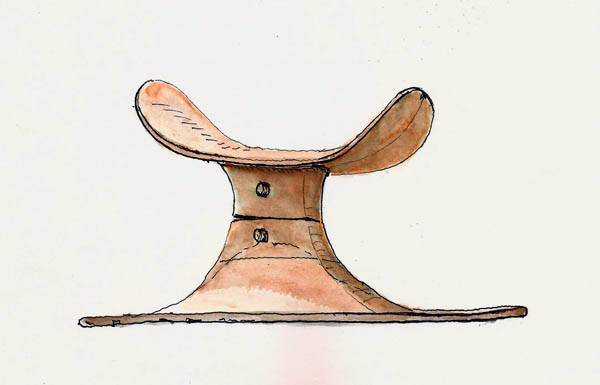 I started with this headrest. I saw it as a challenge because it was both handmade from wood and also centuries old. Thus, in addition to having odd, curved surfaces, it was also somewhat asymmetric and the top was a bit askew. It was a fun subject.