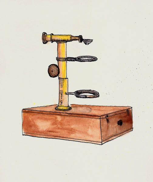 There’s a new exhibit all about nanotechnology and they’re got a series of microscopes, showing their development history. I chose this early, somewhat simple microscope as an ellipse/alignment challenge. It worked out ok but I really should have drawn it larger and taken more time with it. Baby steps.