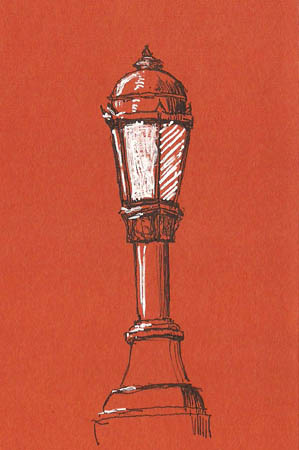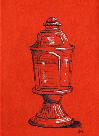 I’m a guy who loves drawing lines more than anything else. I’m drawn to watercolors mostly cuz everyone else is, proving that I’m as much of a lemming as anyone else. But the red paper releases me from the thought of adding color so I can just enjoy drawing with my fountain pens. It won’t be the only sketching I do as I’m not sure how well it fits into my urban sketching passion, but for sitting around the house drawing, it’s pretty sweet… or is that sweet tooth?