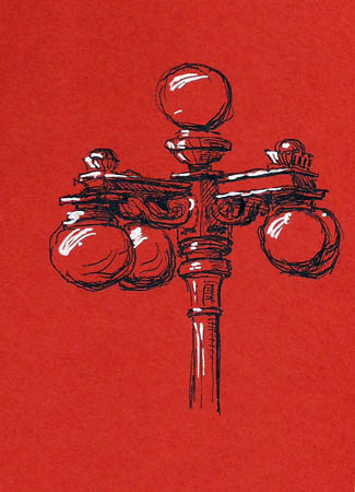 That night I sat at my desk with a photo of a street lamp on my laptop. I only spent a few minutes on it but the red paper made it a lot of fun.
