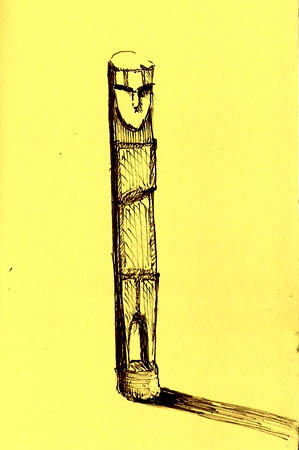 After wandering around a bit I headed to the new nanotechnology exhibit to draw a Mayan 3-tube flute. It’s made of clay and I haven’t a clue why it’s part of the nanotechnology exhibit. Maybe I should have read the plaque.