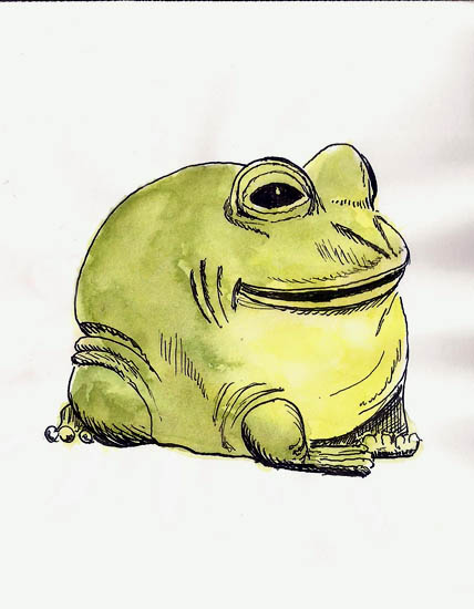 I was in a nursery so flowers and plants were everywhere but I just wasn’t motivated to draw any of them. Not sure why but I was more in the mood to keep drawing garden decorations. I spent time looking at garden gnomes, nearly decided to draw a different turtle but then I saw these fat green frogs. I couldn’t resist. It was akin to drawing a ball with eyes. Hope you like him.