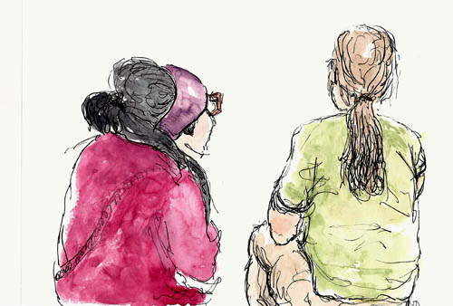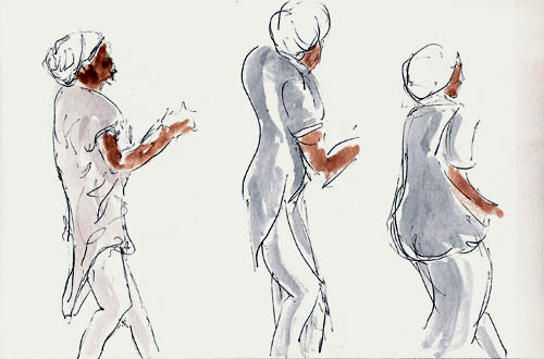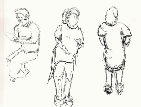 People Move!The achilles heel of people sketchers – those darn humans move when you’re trying to draw them. But consider the alternative. Better yet, experience it. Ask someone if you can sketch them. If they agree, they’ll stop moving. They’ll also stop being human as they sit up straight, look off into the distance and try to look regal. And then you’ll know – moving people aren’t so bad afterall.