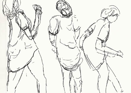 But I finally did attend one of those sessions with Yvan and two things became clear. The first was that I was right. It IS impossible. The second thing was a big surprise. I loved it and can’t wait to do it again. My sketches are sloppy and barely look like the women I sketched. One woman was wearing a huge African head scarf and she had bells covered with scarves on her ankles.