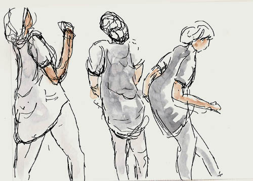 I’ve found it amazing to watch the likes of Veronica Lawlor drawing dancers. It always seemed impossible. Then my friend Yvan started attending sessions at our museum where dancers and choreographers were practicing. The drawings he was producing were spectacular. I kept saying “Maybe I’ll come along” and always I chickened out. As a slow [understatement alert] sketcher this seemed impossible and I guess I was trying to avoid the frustration.